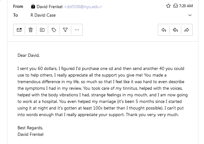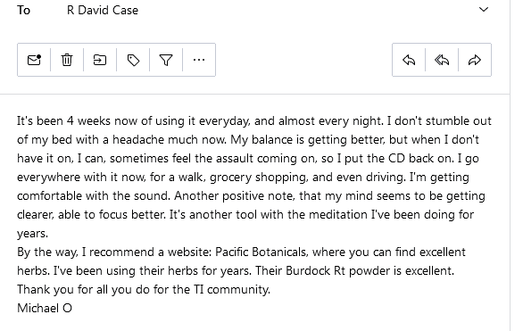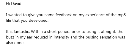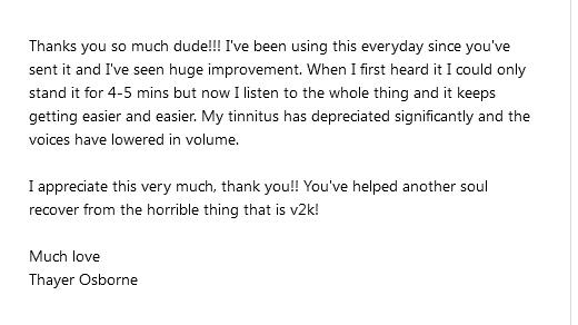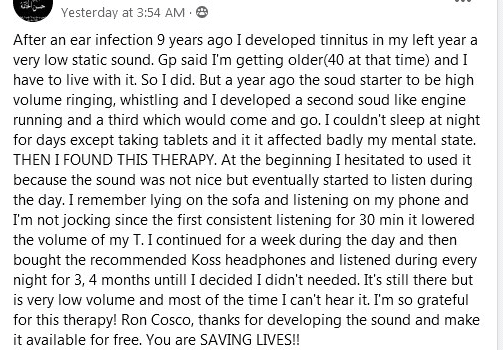 Hz with my right ear since getting tinnitus. Now I can hear over 14,600 Hz with that ear. I tested with several sound